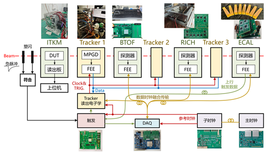 经过前期技术攻关,STCF探测谱仪的部分探测系统完成了样机的研制。本次测试围绕硅内径迹探测器(ITKM)、桶部粒子鉴别探测器(PIDB)、端盖粒子鉴别探测器(PIDE)、电磁量能器(ECAL)、数据获取(DACQ)、触发(TRIG)以及时钟与数据传输(CLDT)共7大系统的性能,开展了联合测试。束流测试利用0.5—5 GeV的缪子、电子和强子,针对样机的粒子鉴别能力、能量、位置和时间响应等关键性能指标进行了系统性测试,为后续详细开展样机性能研究提供了重要的实验数据。